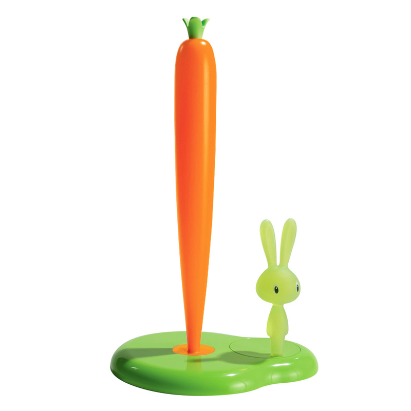 Alessi Bunny & Carrot talouspaperiteline on leikkisä lisäys keittiöön! Stefano Giovannoni on suunnitellut Alessille valloittavan hauskan Bunny & Carrot talouspaperitelineen – jokapäiväinen käyttöesine tuo iloa aina, kun sitä käyttää. Talouspaperirulla asetetaan porkkanaan ja pyörivällä alustalla oleva Magic Bunny huolehtii siitä, että rullan vähentyessä paperiarkki on helppo katkaista.