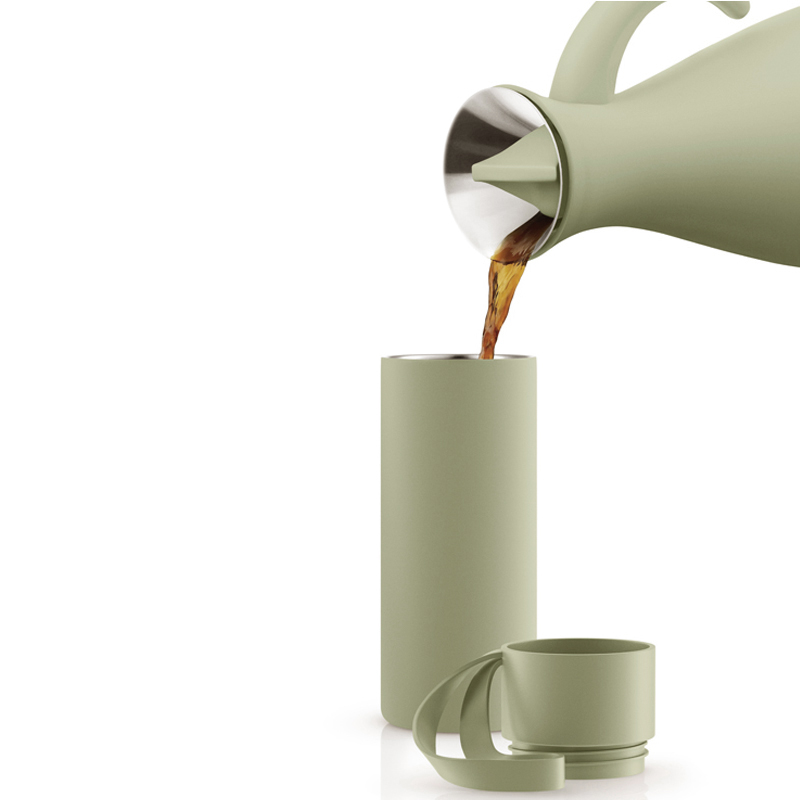 Eva Solon eleettömän funktionaalinen termoskaadin, joka myös kaunistaa kattausta ja kahvipöytää. Termoskaatimessa on 100 % tipat estävä kaatonokka. Pitää kuuman juoman kuumana ja kylmän kylmänä.