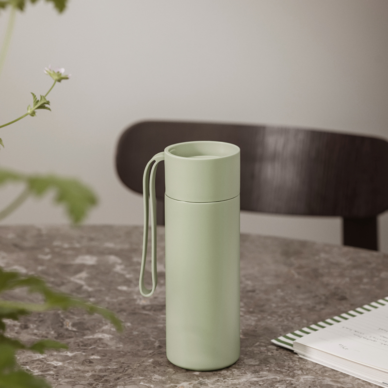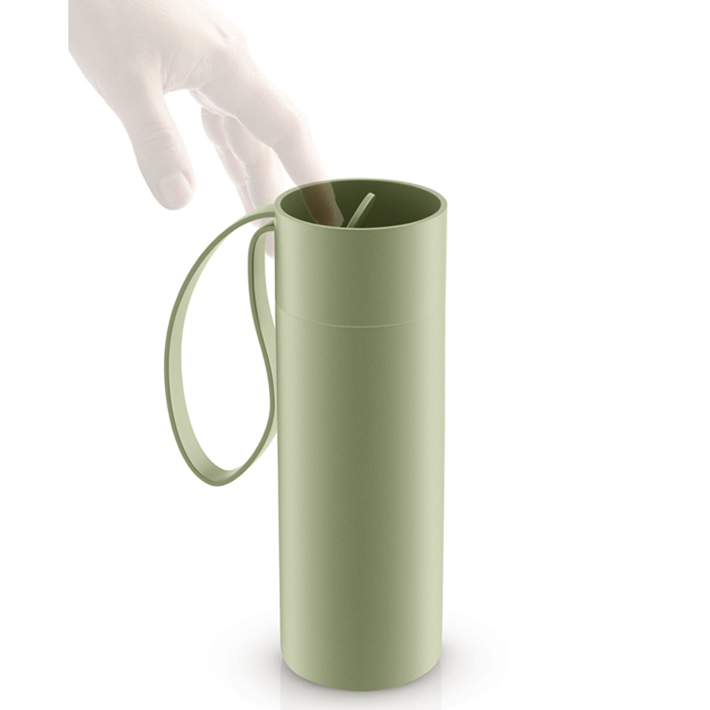 Eva Solo -termosmuki pitää juoman lämpimänä tai kylmänä jopa 6 tuntia. Muki sulkeutuu tiiviisti, joten se on helppo ottaa mukaan vaikka laukkuun tai autoon. Avaaminen ja sulkeminen käy kätevästi yhdellä kädellä. Termosmukin tilavuus on 0,35 litraa ja kaikki osat ovat konepestäviä.