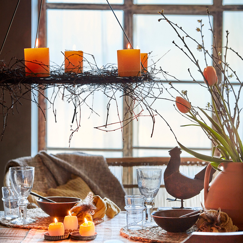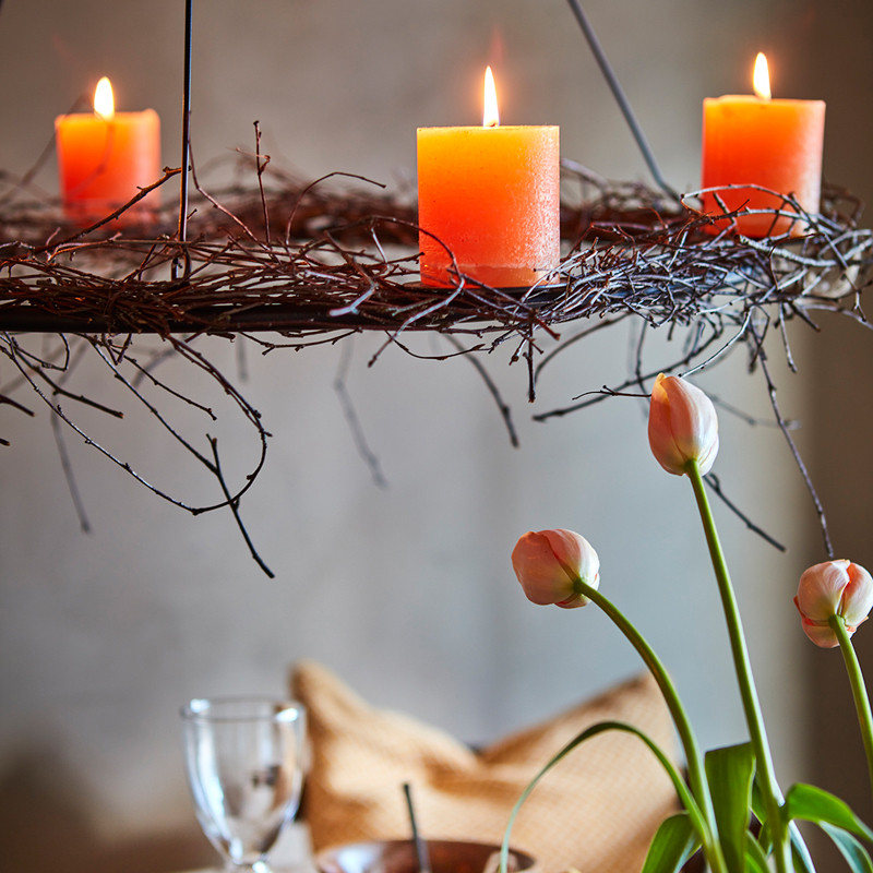 Upea riippuva kynttelikkö tekee juhlan sesongin mukaan: pääsiäinen, juhannus tai joulu! Koristele kynttelikkö kukilla, risuilla, valonauhoilla tai juhlan teeman inspiroimana. Erittäin tukeva metallinen katosta riippuva kynttelikkö on varustettu kynttiläpidikkeillä 6kpl, joihin sopii parhaiten noin 7cm halkaisijaltaan olevat kynttilät.