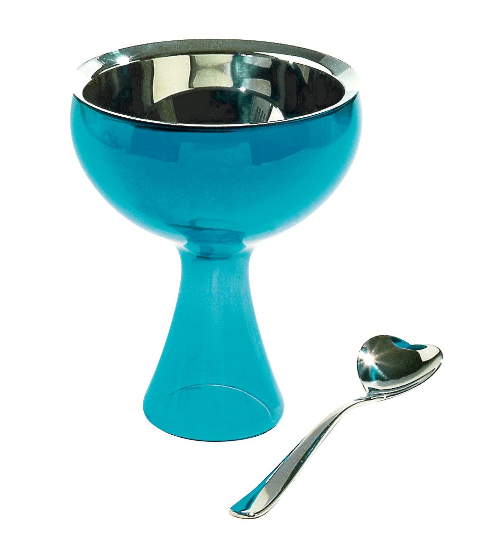 Alessin Big love -jäätelökulho tuo hehkuvaa väriä kattaukseen ja tarjoiluun. Big Love -setti koostuu värillisestä jalallisesta kulhosta sekä teräksisestä sisäkulhosta. Pakkaukseen kuuluu upea teräksinen sydänlusikka.…