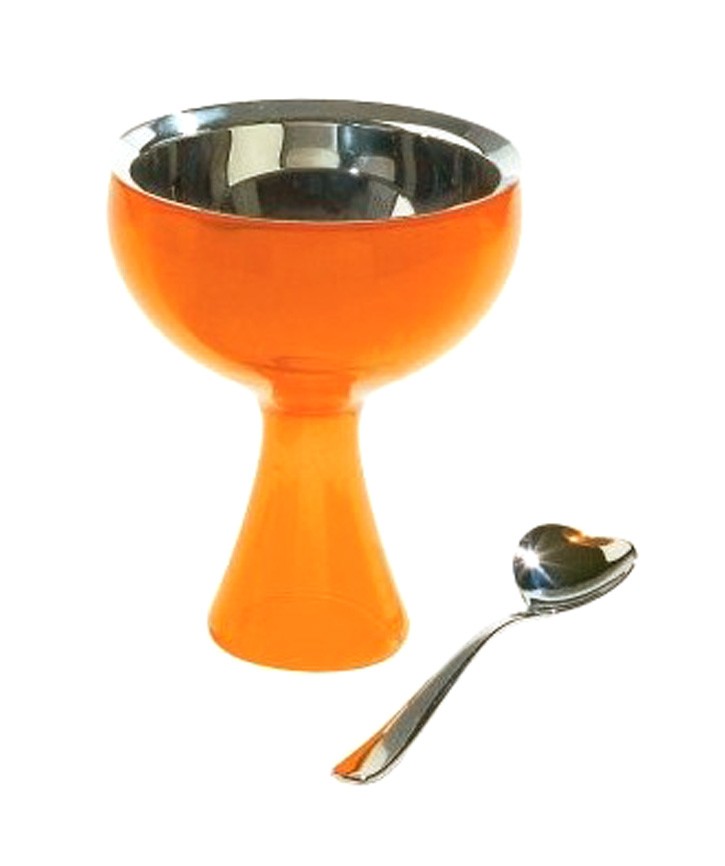 Alessin Big love -jäätelökulho tuo hehkuvaa väriä kattaukseen ja tarjoiluun. Big Love -setti koostuu värillisestä jalallisesta kulhosta sekä teräksisestä sisäkulhosta. Pakkaukseen kuuluu upea teräksinen sydänlusikka.…