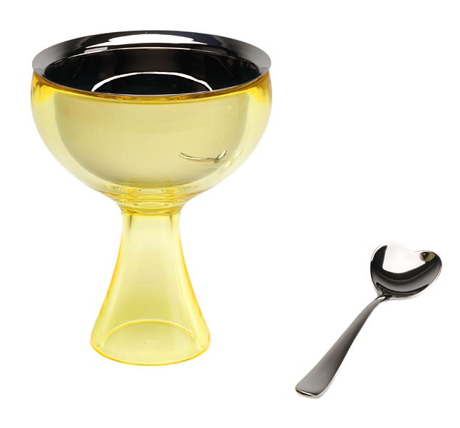 Alessin Big love heleän elegantti vaaleankeltainen jäätelökulho tuo väriä kattaukseen ja tarjoiluun.