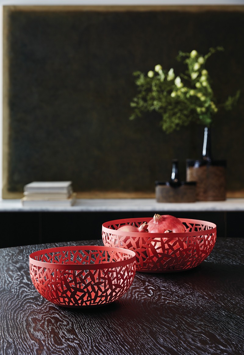 Alessin Cactus! teräksinen kulho on veistoksellinen hedelmä- ja leipäkori. Upea kuviointi on laserleikattu.