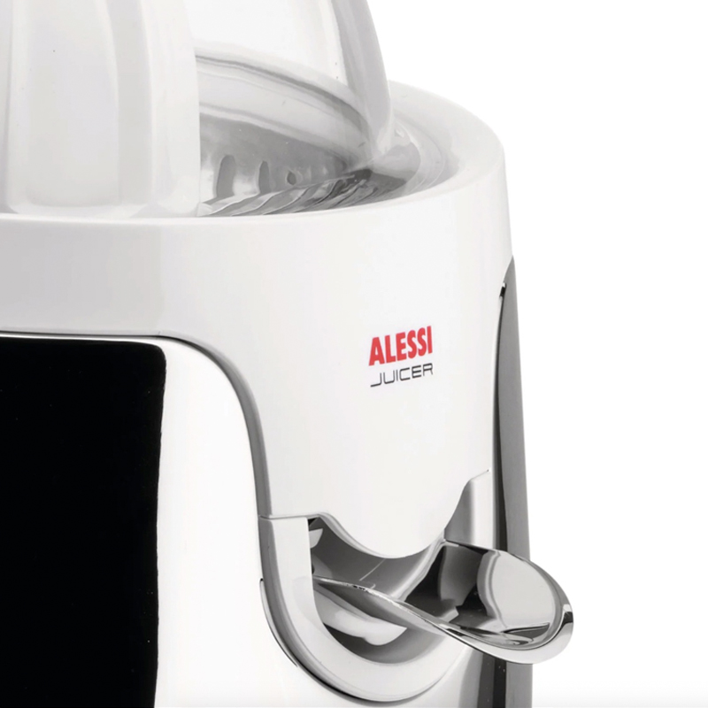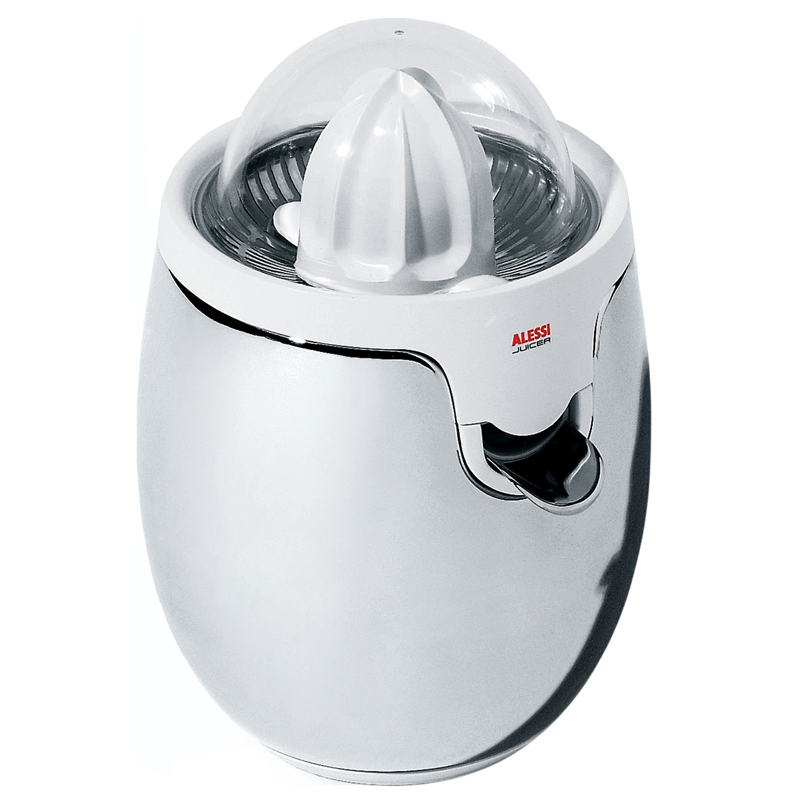Alessin Mami-sarjan sähkökäyttöinen sitruspuristin kaunis klassikko. Stefano Giovannoninon muotoilema moderni ja helppokäyttöinen mehupuristimessa on teräskuoret. Puristettava mehu valuu sisällä olevaan astiaan ja edessä olevasta nokasta saat valutettua mehun suoraan juomalasiin.