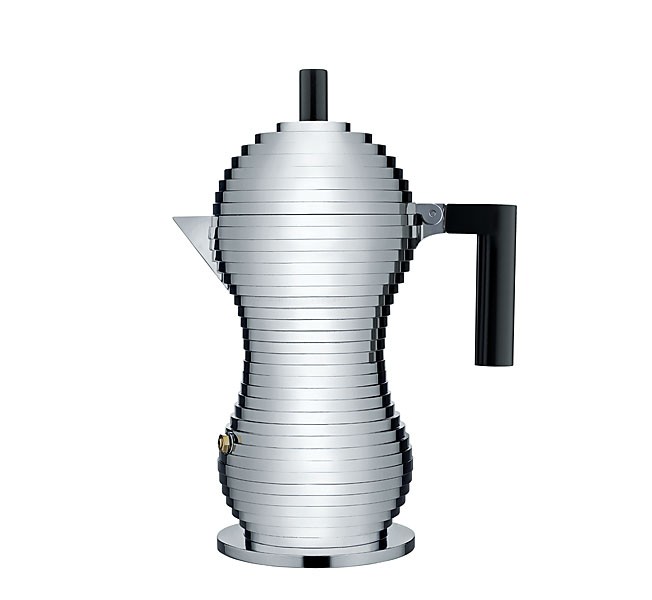 Alessi Pulcina espressokeitin on mustakahvainen, Michele de Lucchin suunnittelema. Näin upeaa espressopannua ei tarvitse piilottaa kaappiin, vaan se saa patsastella keittiön kunniapaikalla. Pulcina espressokeittimellä keität aromikkaat espressot nopeasti. Sopii myös induktioliedelle.