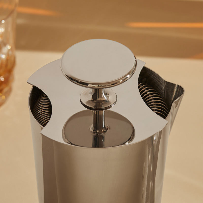 Alessin The Tending Box -sarjaan kuuluva Cocktail-siivilä on käytännöllinen ja tyylikäs väline drinkkien valmistukseen. Giulio Iacchettin suunnitteleman kaksoissiivilän ansiosta voit valita parhaan mahdollisen suodatuslaadun ja tarjoilla juomat parhaalla mahdollisella tavalla. Kaksoissiivilöintiä käytetään erityisesti drinkeissä, joissa on tuoremehuja, yrttejä tai murskattuja aineksia, jotta lopputulos on täysin kirkas ja tasalaatuinen.