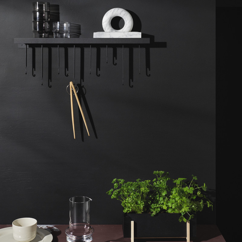 Design House Stokholmin tyylikäs Atelier on tukeva teräksinen seinänaulakko, johon ripustat esim. avaimet, vaatteita ja asusteita. Tästä tilaihmeestä vaatteet löytyvät helposti. Atelier on erinomainen naulakko myös keittiöön tai kylpyhuoneeseen – mihin vain, missä on jotain ripustettavaa!