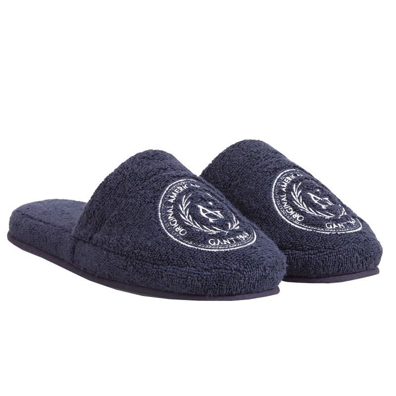 Päällinen on pehmeää puuvillasamettia (sisä- ja ulkopuolella). Päällistä komistaa klassinen Gant Crest-kuvio brodeerattuna. Pohja taipuisaa muovia, jonka päällä on paksu pehmuste. Tossut voi pestä koneessa hienopyykissä. Tohvelit ovat myös loistava lahjaidea!