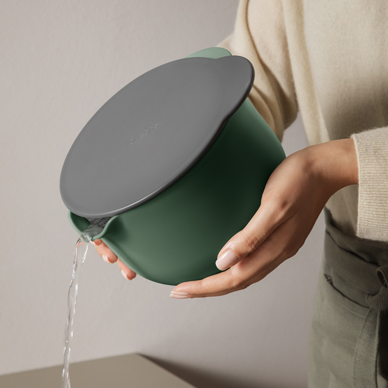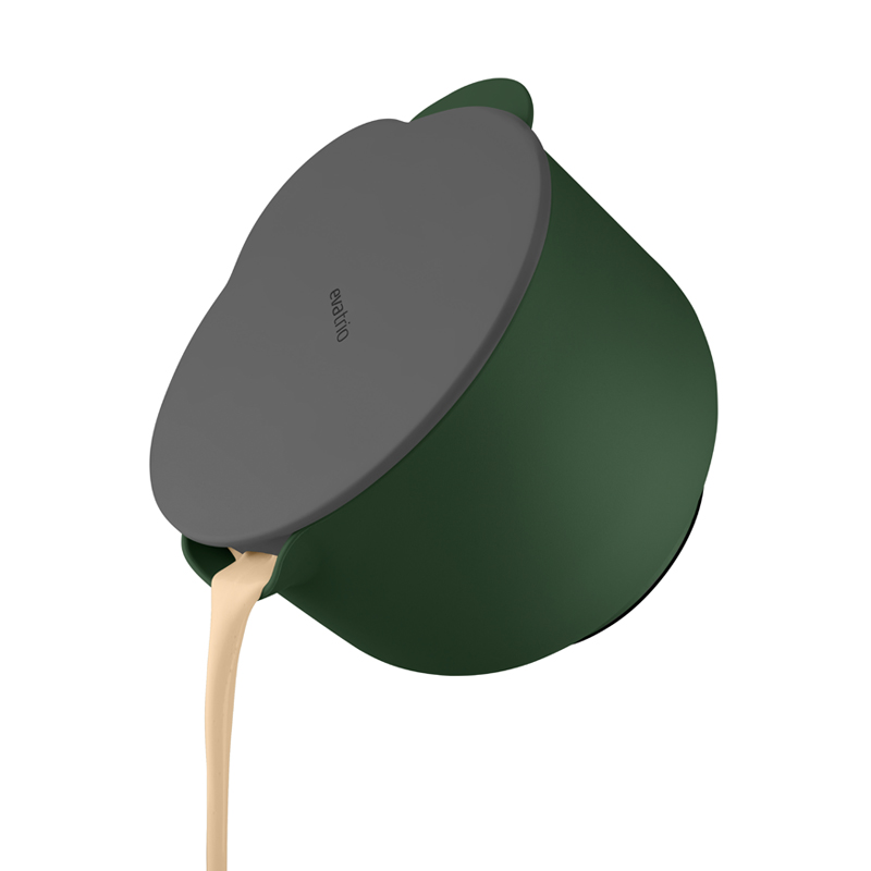 Eva Solon leivontakulhoon sopivassa kannessa on kaksi erikokoista kaatoaukkoa sekä siiviläaukko pelkän nesteen valuttamista varten. Kannen avulla kulho on myös mahdollista sulkea tiiviisti esimerkiksi jääkaappisäilytystä varten. Kestää astianpesukoneen.