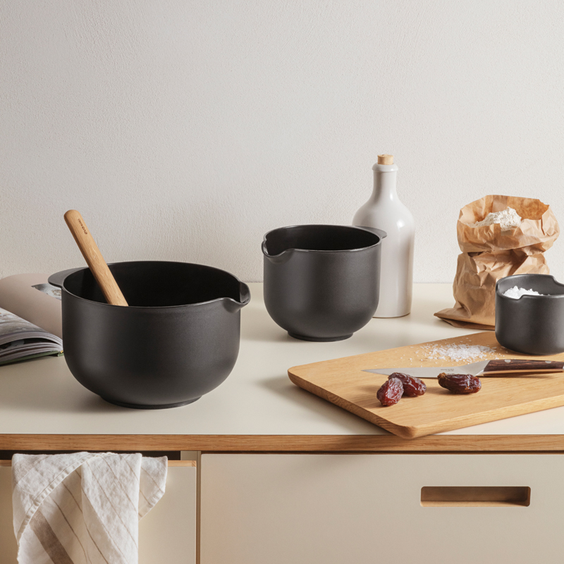 Eva Solon klassisen tyylikäs leivontakulho tekee leipomisesta mukavaa! Kulhon suorat reunat ja leveä pohja helpottavat sekoittamista ja vatkaamista. Kaatonokan ansiosta sisällön kaataminen paisto- tai tarjoiluastiaan sujuu siististi. Pohjassa on kumireunus, joten kulho pysyy paremmin paikallaan työtasolla.