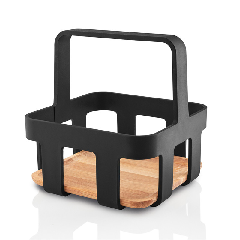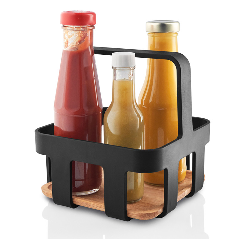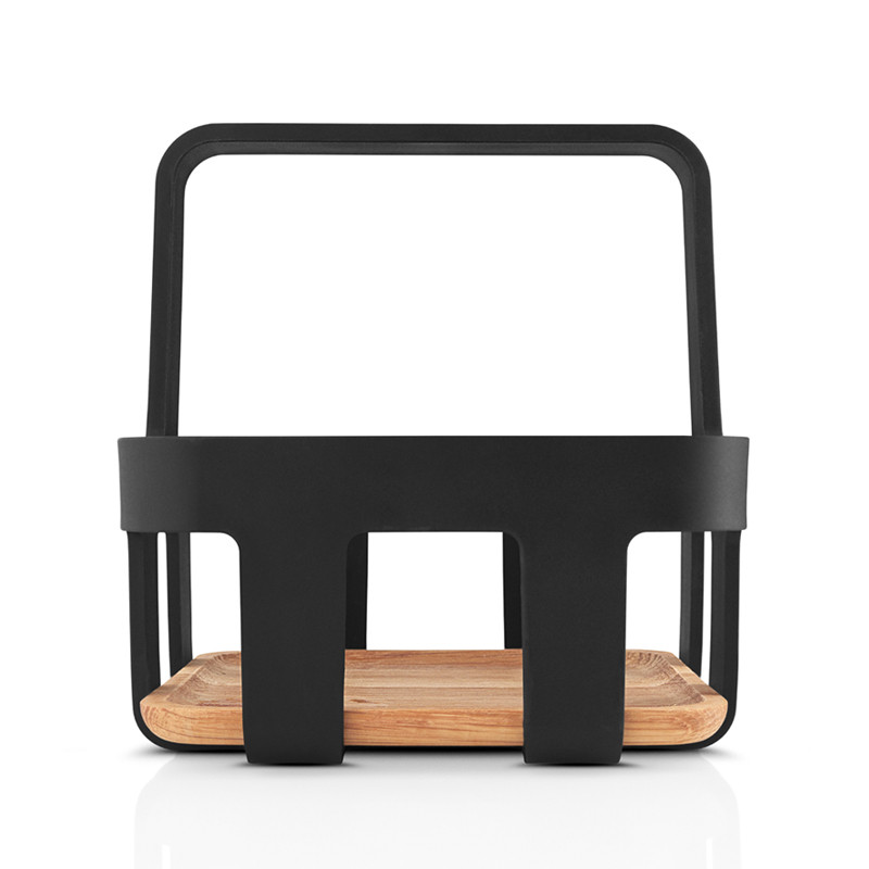 Eva Solon suosittu Nordic Kitchen sarja täydentyi tarpeellisella maustetelineellä, jonka avulla öljypullo, suola- ja pippurimyllyt, sekä muut mausteet löytyvät kätevästi yhdestä paikasta. Kantokahvan ansiosta tarviketeline on helppo siirtää ruokapöytään tai terassille. Tyylikäs kori viimeistelee kattauksen ja helpottaa mausteiden säilytystä. Nordic Kitchen mausteteline on valmistettu FSC sertifioidusta tammesta ja tukevasta muovista. Puhdistetaan pyyhkimällä kostealla liinalla.