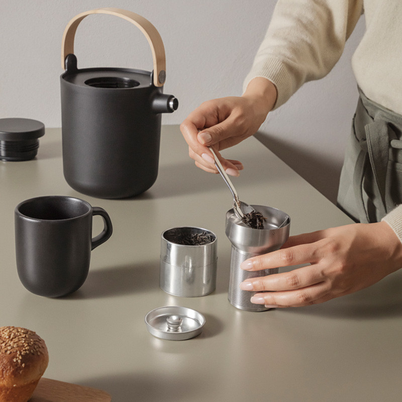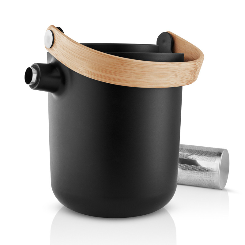 Eva Solon modernissa Nordic Kitchen kannussa on integroitu teenhaudutin, joka mahdollistaa teen valmistamisen suoraan termoskannuun. Muotoilussa upea ulkonäkö yhdistyy jälleen huippuluokan funktionaalisuuteen; kaadin hauduttaa teen kätevästi suoraan kaatimeen ja teräksinen sisäosa pitää juoman kuumana pitkään. Haudutinosa on helppo nostaa kannusta pois teen valmistuttua. Termoskaatimessa on 100% tipaton kaatonokka, sekä kaatonokassa filtteri. Bambukahvan avulla kaadinta on helppo käyttää, kahvan voi taittaa alas tai jättää pystyyn.