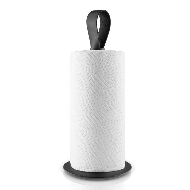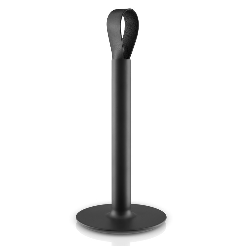 Eva Solon ruostumattomasta teräksestä valmistettu talouspaperiteline sopii täydellisesti minimalistiseen tyyliin. Nahkalenkki on upea yksityiskohta, ja siitä teline on myös kätevä napata mukaan ruokapöytään, terassille tai pihan grillipaikalle. Alusta on erityisen painava, mikä lisää telineen tukevuutta käytössä. Kuminen pohja puolestaan pitää telineen paikoillaan ja suojelee pöydän pintaa naarmuuntumiselta.