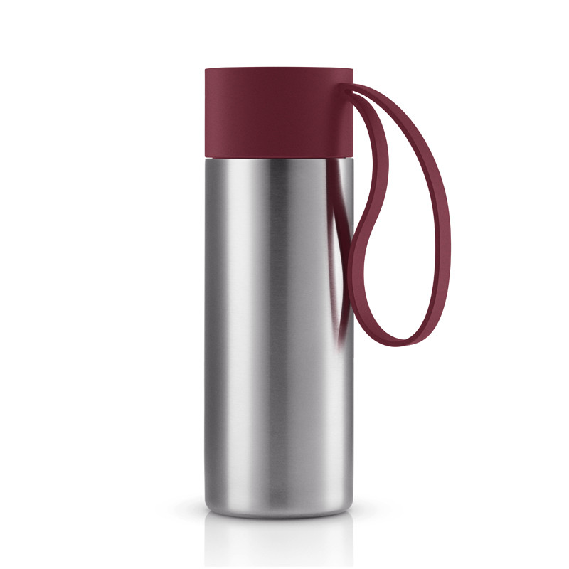 Eva Solo -termosmuki pitää juoman lämpimänä tai kylmänä tyylikkäästi jopa 6 tuntia. Muki sulkeutuu tiiviisti, joten se on helppo ottaa mukaan vaikka laukkuun tai autoon. Avaaminen ja sulkeminen käy kätevästi yhdellä kädellä. Termosmukin tilavuus on 0,35 litraa. Upea väri granaattiomena!