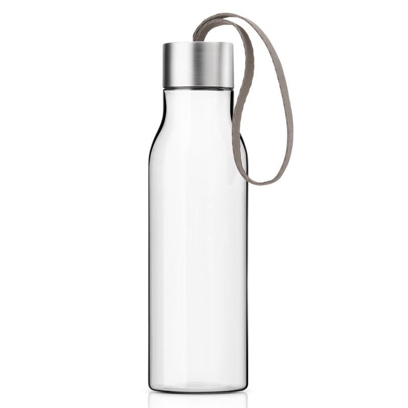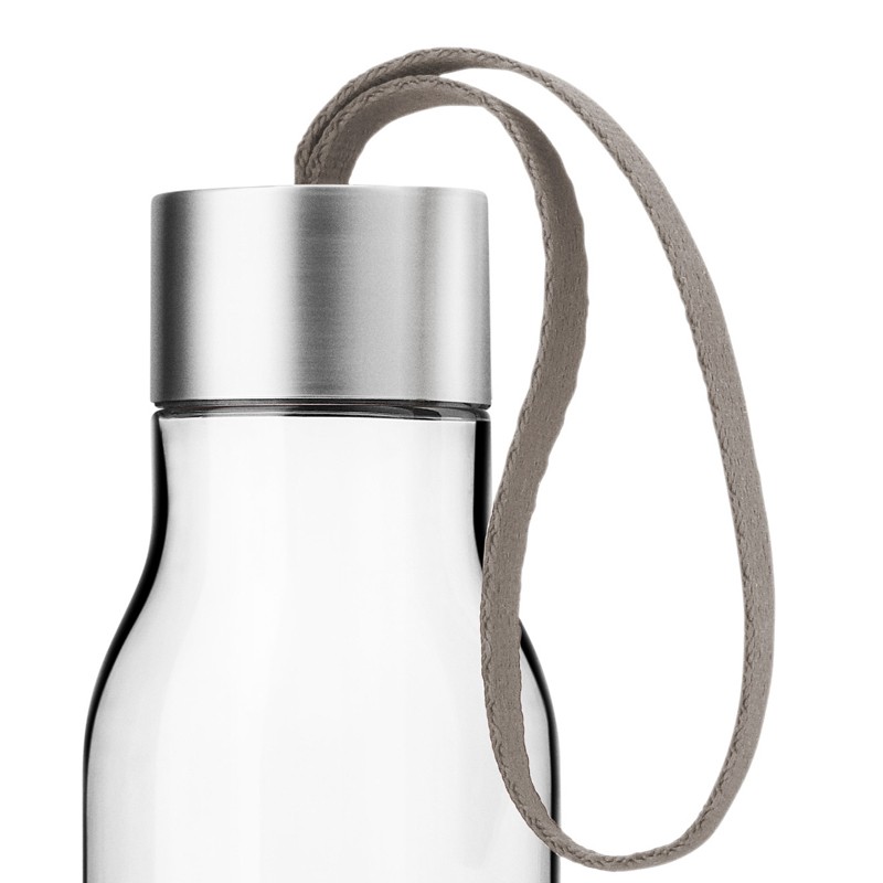 Raikkaan tyylikkäässä Eva Solo vesipullossa kannat juomaveden mukanasi niin käsilaukussa, jumppakassissa kuin eväsrepussakin. Säästät luontoa, kun otat pullollisen hanavettä mukaan kotoa, sen sijaan että ostaisit pullotettua vettä kaupasta, kioskilta tai huoltoasemalta. Pullon tilavuus 0,5 litraa, korkki terästä ja pullo muovia. Pullon muovi on turvallista elintarvikekäytössä, sillä se ei sisällä ftalaatteja tai Bisfenoli A:ta. Näppärä korkkiin kiinnitetty kantohihna on persoonallinen yksityiskohta.