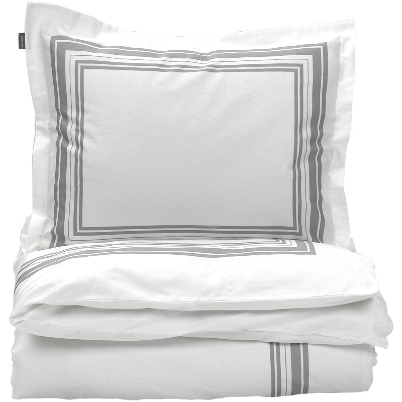 Gantin lakanat ovat vuodevaatteiden aatelia – vastustamattoman pehmeitä, helppohoitoisia ja kestäviä. Upea klassinen kehyskuvio kiertää pussilakanan reunoissa. Lakanan kääntöpuoli on valkoinen, joten saat halutessasi myös täysin valkoisen petauksen! Kiva idea on myös taittaa peite yläreunastaan, jolloin kääntöpuoli onkin kaunis yksityiskohta.