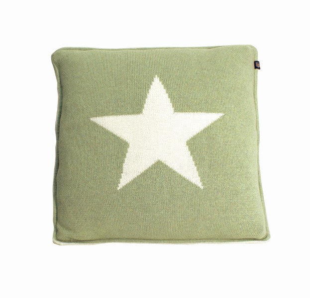 Originaali GantinBig star tähtityyny pistaasin vihreänä. Tyynynpäällinen on vahvaa puuvillaneulosta joka säilyttää hyvin muotonsa käytössä. Reunoja kiertää tere, jossa on valkoinen raita. Tummansininen Gant-vaakunalabel.