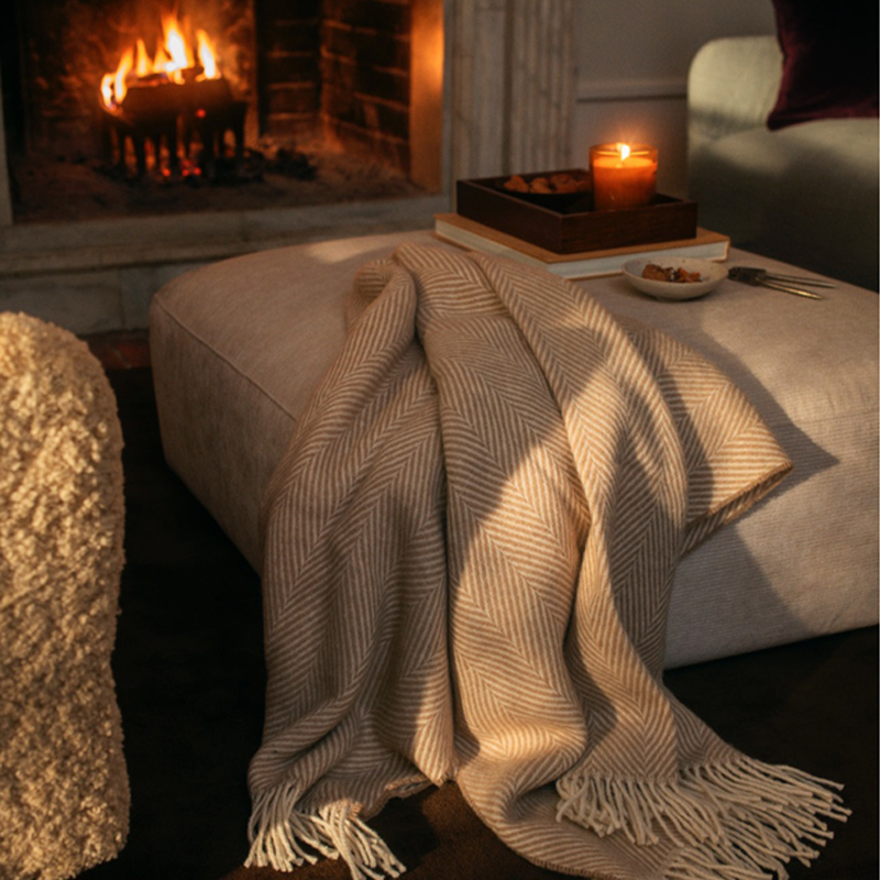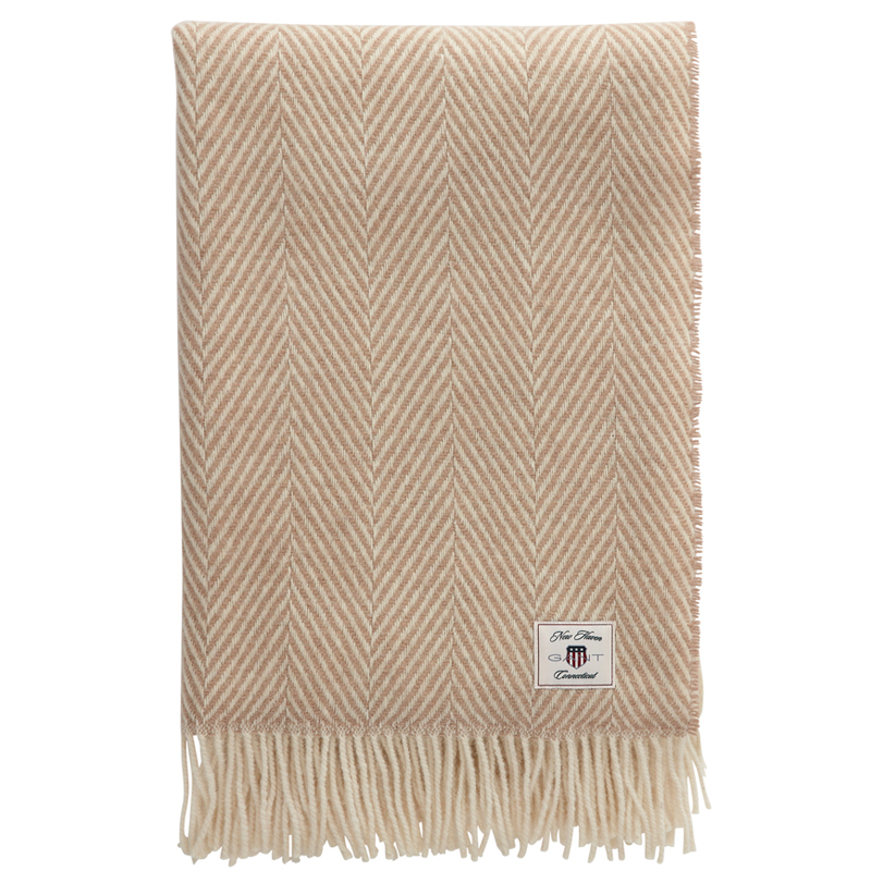Gant Herringbone wool throw torkkupeitto, taupe beige