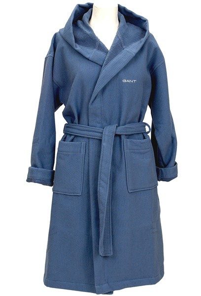 Gantin kylpytakki on pehmeää ja kevyttä vohvelikangasta. Sisäpinta on tiheää ja leppoisan tuntuista froteeta. Kylpytakissa on huppu ja taskut. Kylpytakin täydentää saman sarjan kylpytossut.