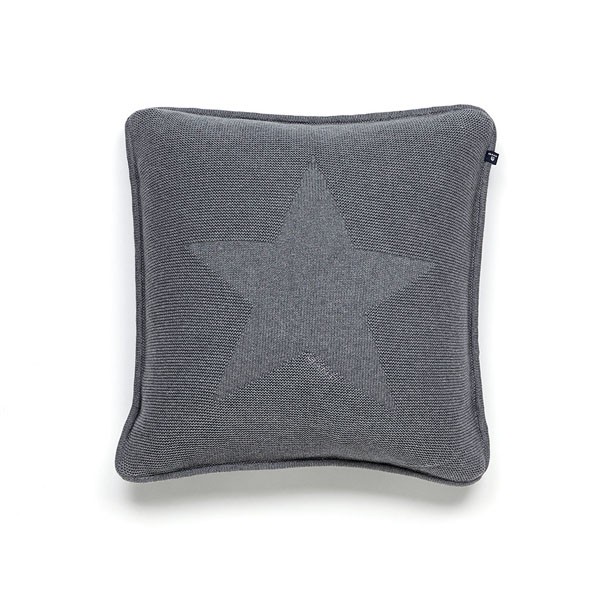Gant Melange Big Star tyynynpäälliseen on neulottu tähtikuvio. Reunoja kiertää viimeistelty tereneulos ja pienenä yksityiskohtana sivusaumassa Gantin logo. Taustapuolella vetoketju.