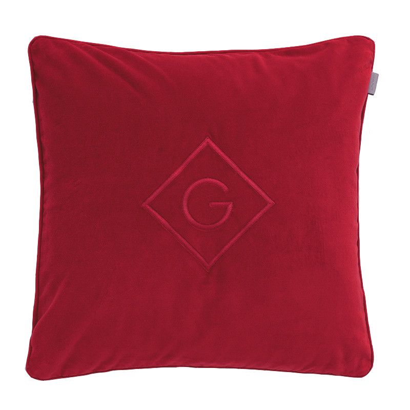Gantin upea ja ylellinen hehkuvan punainen Velvet G samettityyny tuo sisustukseen intensiivisen ja lämpimän tunnelman. Sivusaumassa on piilovetoketju ja harmaa nahkainen Gant-logo. Tyynynpäällisen ilmeen viimeistelee klassinen Gant-timantti logo ja reunoja kiertävä terenauha.