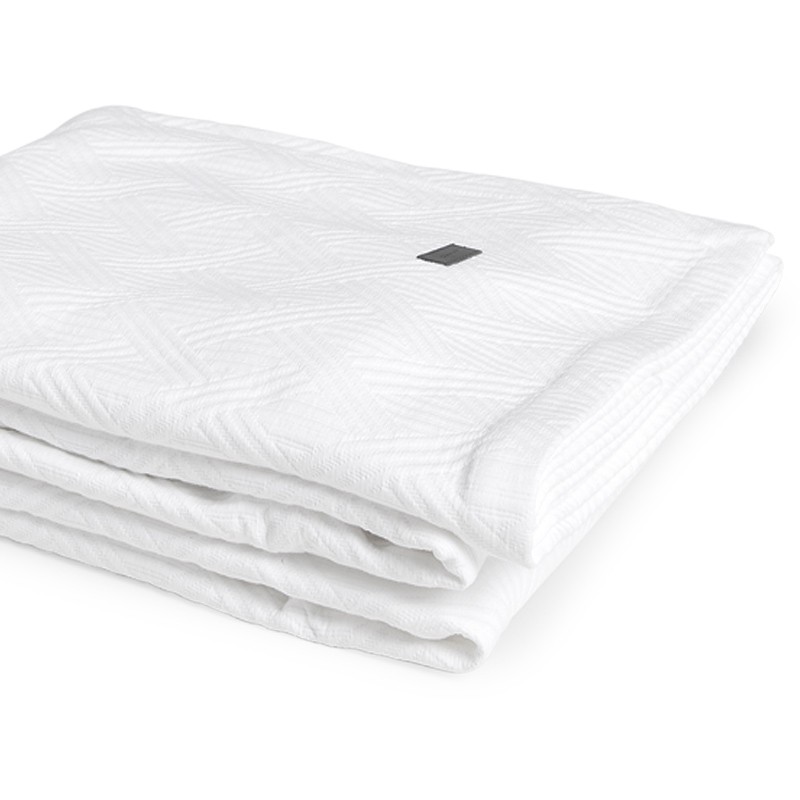 Gant Vic päiväpeitto puhtaan valkoisena. Materiaali tiheään kudottua 100% puuvillaa. Peitto pysyy tip-top kuosissaan ja on siksi helppo pedattava. Todella kaunis, graafinen kudottu kohokuvio viimeistelee makuuhuoneen sisustuksen. Täydennä kattaus saman sarjan reilun kokoisilla Vic-vuodetyynyillä.