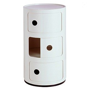 Kartellin suosittu Componibili on klassikon arvoon noussut säilytyskaluste, jota on valmistettu jo vuodesta 1969. Componibilin liukuovien taakse piiloutuvat kirjat, lelut, neulelangat, kaukosäätimet, meikit, kenkienhoitovälineet – vain mielikuvitus on rajana! Materiaalinsa puolesta Componibili sopii myös kylpyhuoneeseen. Vähän tilaa vievänä se on suosittu yöpöytänä. Olohuoneessa klassikko palvelee sivupöytänä ja eteisessä säilytyskalusteena. Componibileja valmistetaan eri korkuisina ja tarjolla on useita värivaihtoehtoja.