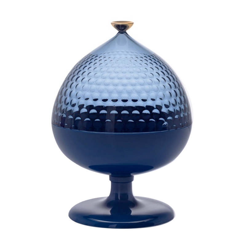 Kartell Pumo säilytysastia on huomiota herättävän kaunis ja monikäyttöinen esine. Jalallista kulho-osaa voit käyttää tarjoiluun tai säilytykseen. Elegantti ja ylellinen kupu puolestaan suojaa tarjottavia herkkuja tai säilytettäviä tavaroita. Kirsikkana kuvun päällä on kullankiiltävä nuppi.