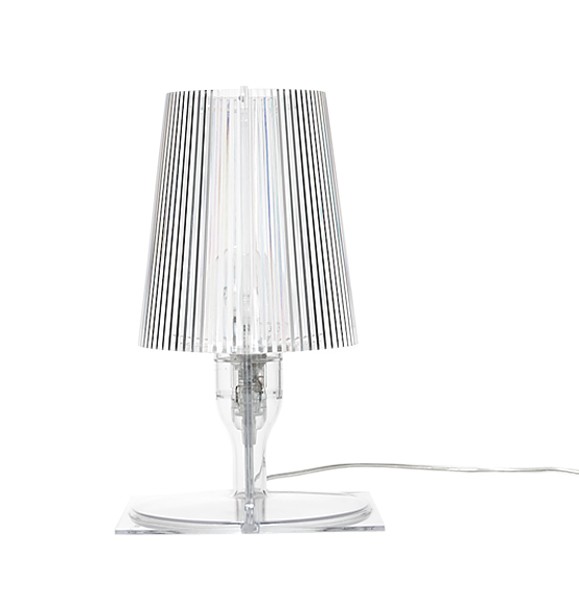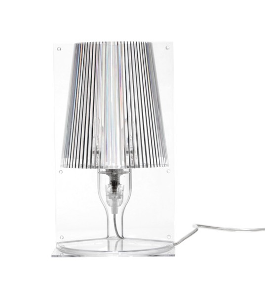 Kartellin Take -pöytävalaisin on muodoltaan kekseliäs muunnelma klassisesta pöytävalaisimesta. Läpinäkyvässä materiaalissa valo leikkii heijastellen sileässä rungossa ja vekkipintaisessa varjostinosassa. Läpinäkyvä johto viimeistelee kokonaisuuden. Pienen kokonsa ansiosta Take löytää paikkansa yöpöydällä, lipaston päällä tai pöytävalaisimena. Valaisin on pakattu näppärään läpinäkyvään pakkaukseen, joten se on myös täydellinen lahjaidea!