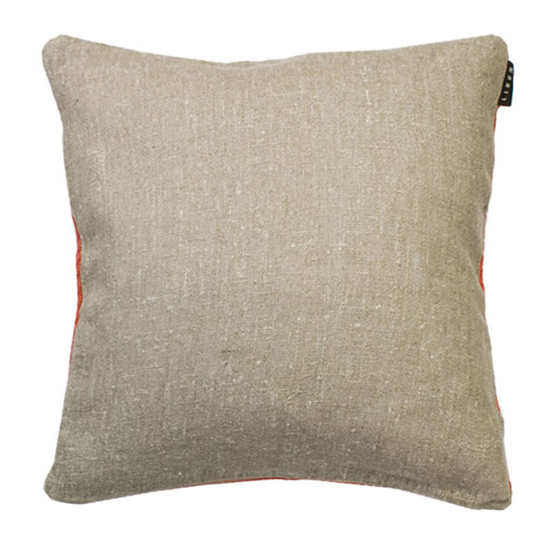 Linumin Hudson tyynynpäällisen etupuolen kangas on kudottu 100% villasta vinottaisiksi kohoraidoiksi, joista muodostuu upea kuviopinta. Taustapuoli on luonnonsävyistä rouheaa pellavaa.