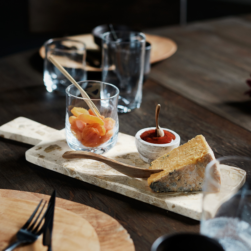 Muubsin näyttävä marmorinen tarjoilualusta tuo eleganssia keittiöösi. Tarjotin sopii erinomaisesti juustojen, hedelmien ja alkupalojen tarjoiluun. Toivota luonto tervettulleeksi kattaukseesi!