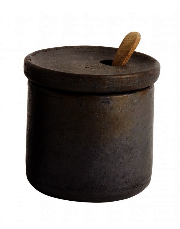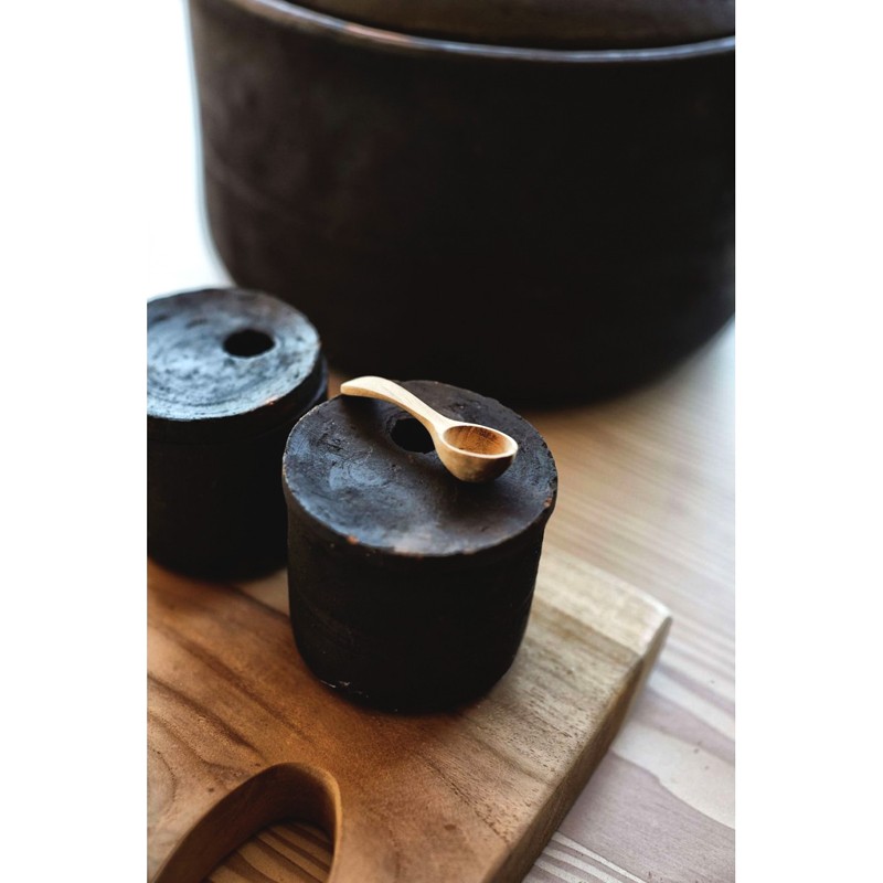 Minimalistinen kannellinen suola- ja pippuriastia on valmistettu rakukeramiikasta. Keramiikka-astioita on poltettu viisi vuorokautta, jolloin saadaan upea ja vaihteleva tummanruskea sävy. Kannessa on pyöreä aukko, johon voi laittaa lusikan. Yhdistele nykyisten astioidesi tai Hazel-sarjan muiden tuotteiden kanssa.