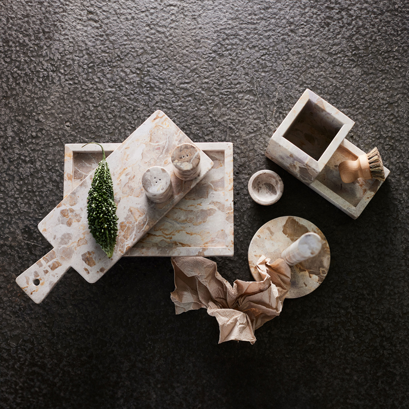 Muubsin näyttävä marmorinen tarjoilualusta tuo eleganssia keittiöösi. Tarjotin sopii erinomaisesti juustojen, hedelmien ja alkupalojen tarjoiluun. Toivota luonto tervettulleeksi kattaukseesi!