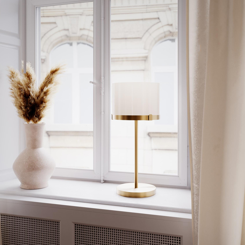 Sessak Marcel pöytävalaisin tuo modernia tyylikkyyttä ja luksusta kotiisi. Moderni muotoilu ja kultainen metallipinta tekevät Marcelista näyttävän katseenvangitsijan. Sen opaalinvalkoinen lasivarjostin suodattaa valon pehmeästi ja luo huoneeseen lämpimän, kutsuvan tunnelman. Marcelin painava messinkijalusta antaa valaisimelle vakautta. Marcel sopii niin moderneihin kuin klassisiin sisustuksiin sopien yöpöydälle, työpöydälle tai olohuoneen sivupöydälle.